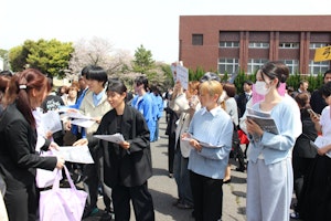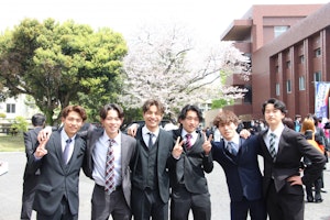 桜が咲き誇るキャンパス内では、設置されたフォトスポットで保護者や友人と一緒に記念撮影をする姿が数多く見られ、和やかな雰囲気での入学式となりました。