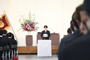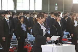 式では、小林潤司学長が式辞を述べたほか、入学生を代表して経済学部 経済学科の小牧 李歌さん(加治木高等学校出身)が「入学生宣誓」を行い、在学生を代表して学友会総務委員長の池田 悠人さん(国際文化学科4年)が在学生歓迎の辞を述べました。