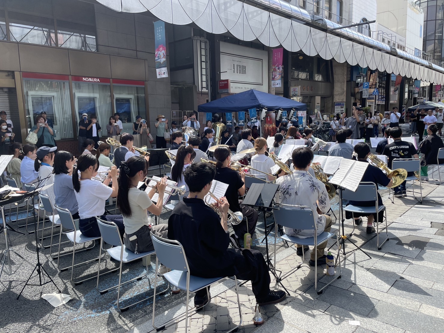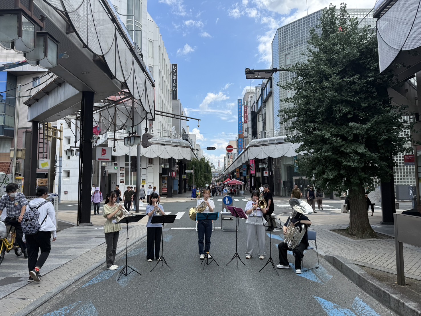当日は晴天に恵まれ、商店街には若々しい音色が響き渡りました。練習を重ねてきた成果を披露する小中高生と、それを温かく見守る地域の方々の姿が印象的で、商店街全体が音楽に包まれる時間となりました。