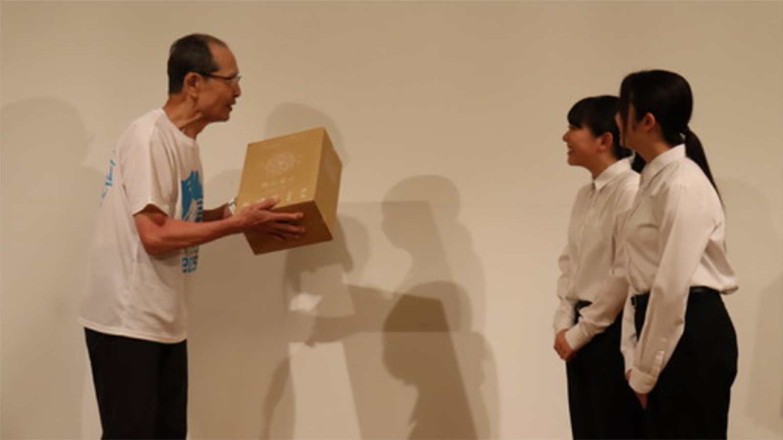 「宵の星々」は大仙市と市内5つの酒蔵、秋田大学生が連携し、酒米栽培から酒造り、プロモーションまでを担う産学連携プロジェクトで誕生したもの。王理事長をはじめ、中畑評議員、王理恵評議員、城島CBOに進呈されました。進呈前には学生によるブランドのプレゼンテーションも行われ、来賓から高い関心が寄せられました。