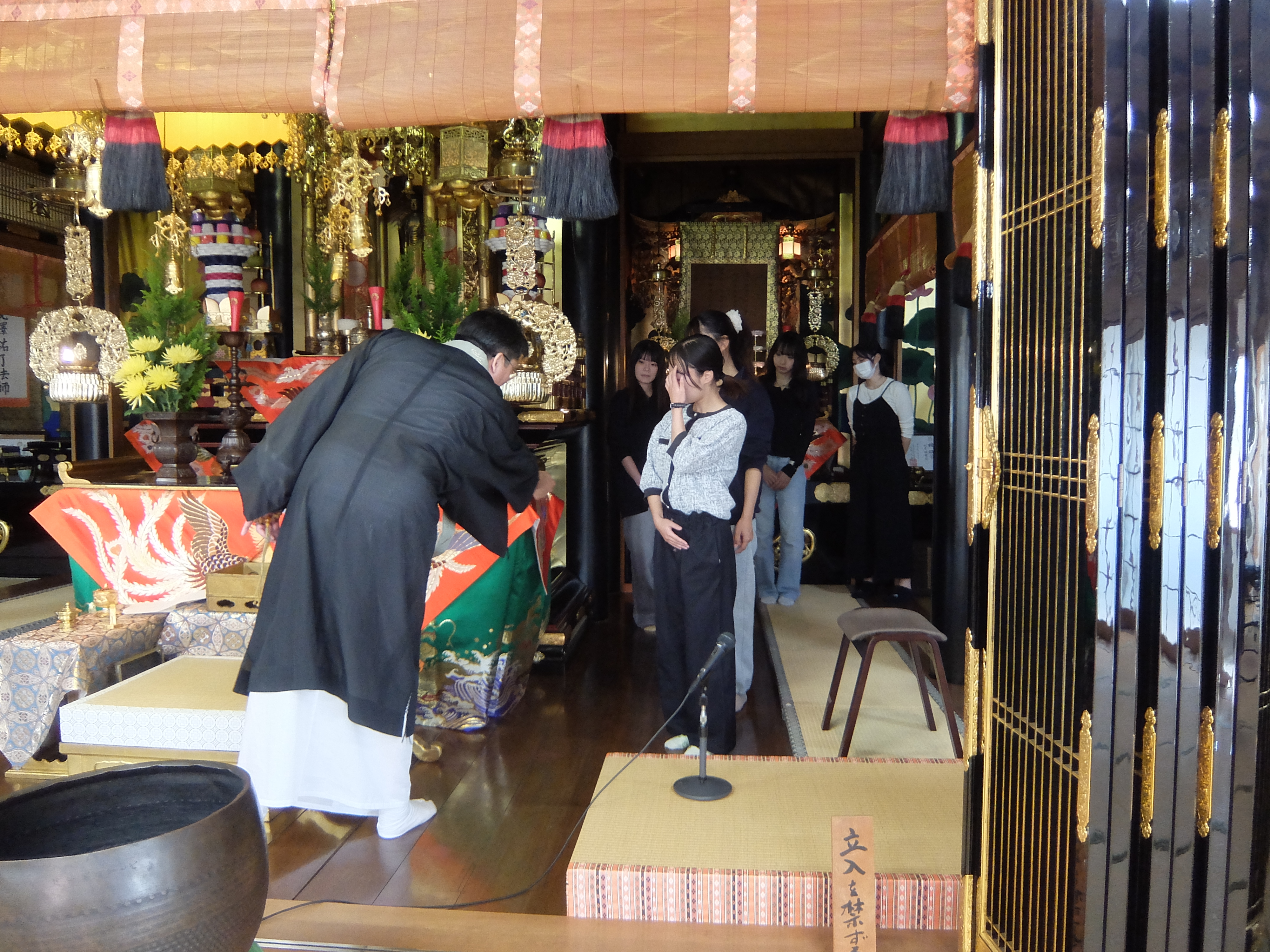 初めてお寺の本堂や地下書庫に入った学生にとって、見るもの全てが新鮮な体験でした。特に、法要の厳かな雰囲気やお経の声に耳を傾ける時間は、普段の生活から離れた「自分と向き合う静かな時間」となりました。