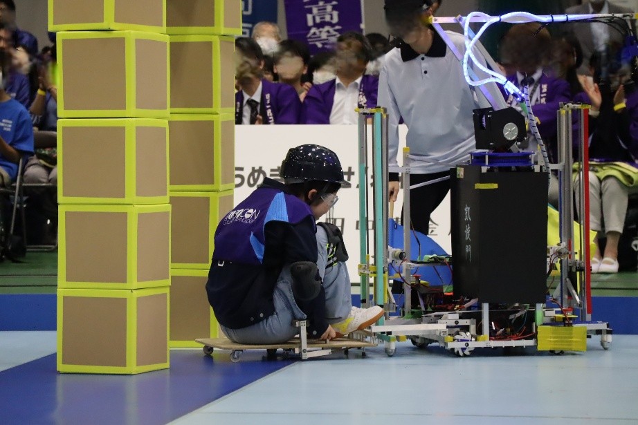 今年の競技テーマは「Great High Gate」で、ロボットがボックスを積み上げてゲートを作り、そのゲートを人が乗った台車と一緒に通過するという競技です。