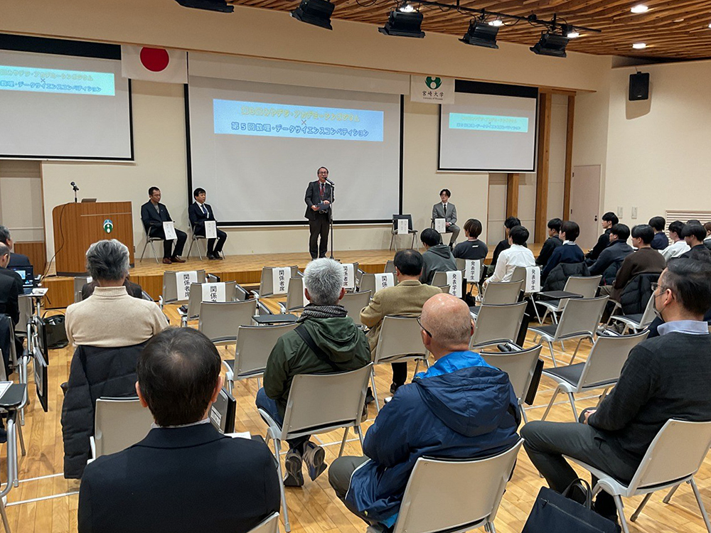 2026年2月7日(土)、宮崎大学創立330記念交流会館 コンベンションホールにおいて、「第5回数理・データサイエンスコンペティション」及び「第3回みやデジ・アカデミーシンポジウム」を合同開催し、学生や企業関係者など約60名、オンラインで約40名、合計約100名が参加しました。
