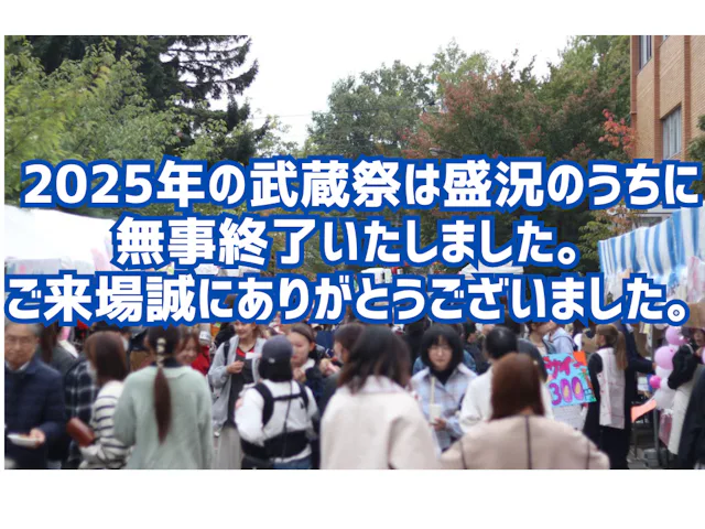 2025年10月11日(土)、12日(日)の2日間にわたり開催されました「第59回武蔵祭」は、お陰様で大盛況のうちに全日程を終了いたしました。ご来場いただきました皆様、ご協力いただきました全ての関係者の皆様に、心より厚く御礼申し上げます。