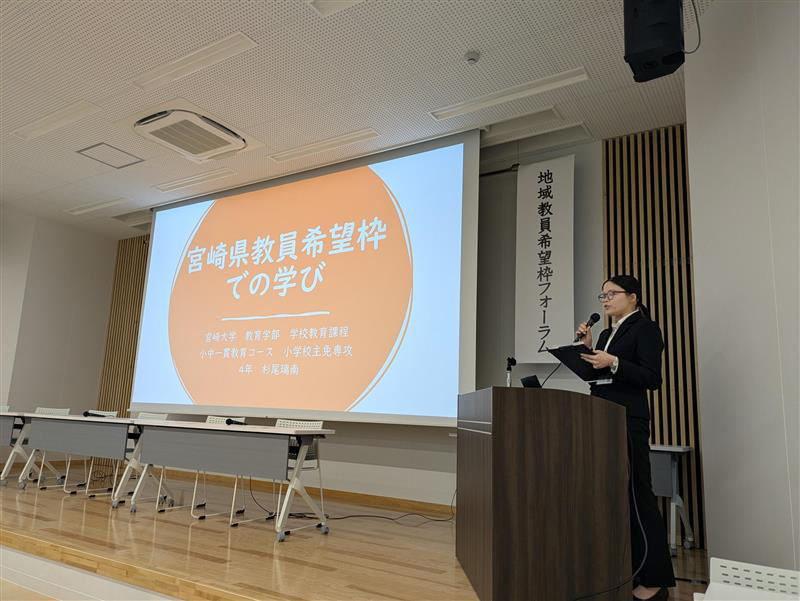 近年、教員不足が全国的な課題となる中、教育学部では「宮崎県教員希望枠」を設け、宮崎県教育委員会と緊密に連携しながら教員養成に取り組み、令和6年度・文部科学省「地域教員希望枠を活用した教員養成大学・学部の機能強化事業」に採択されました。今回のフォーラムは、これまでの取組の成果を広く発信するとともに、教員養成に携わる大学間での情報共有を図ることを目的として開催したものです。