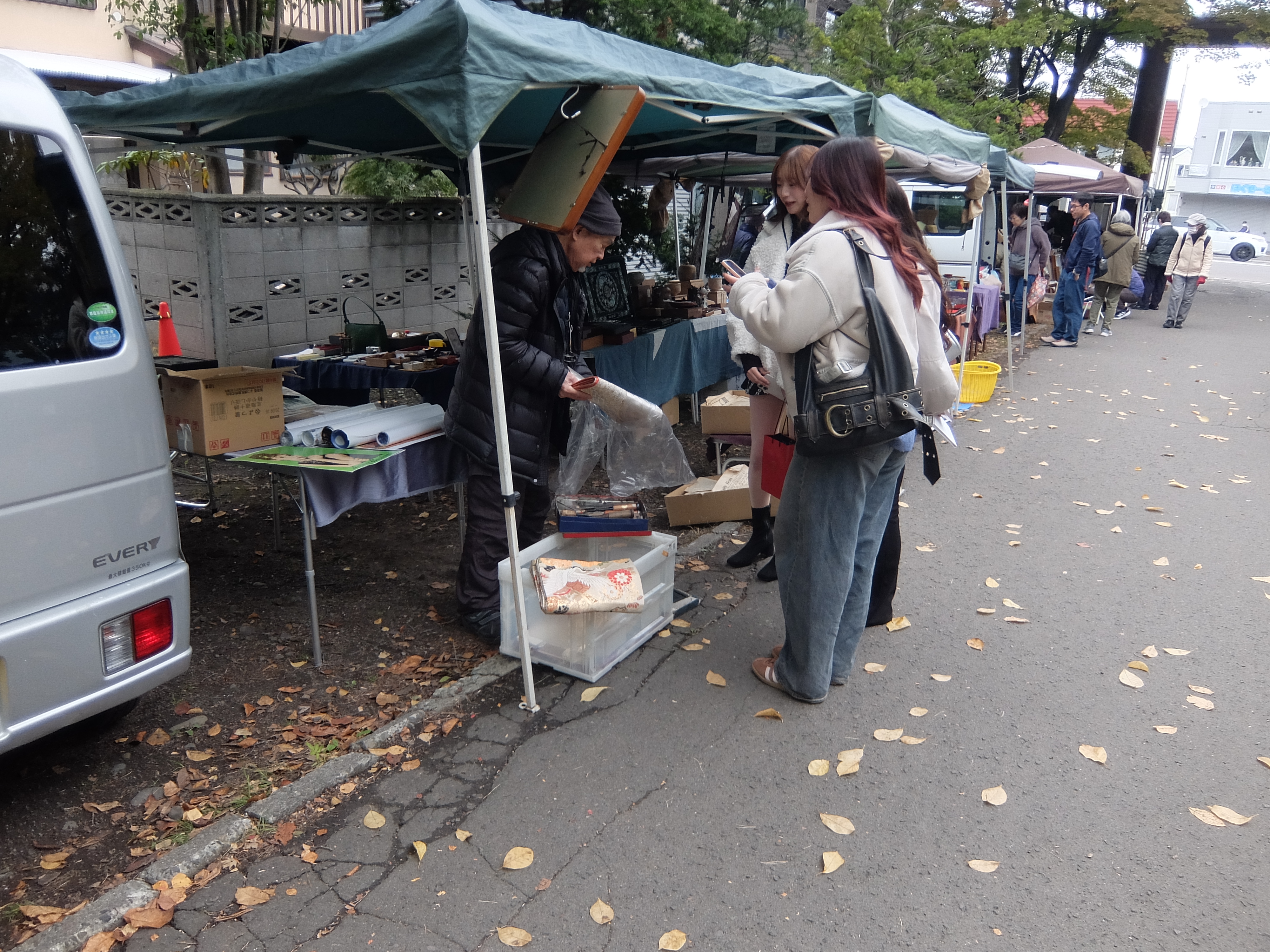 10月26日(日)、本プロジェクトのフィールドワークの一環として、道内各地から骨董品店が集まる「骨董青空市」、通称「豊平神社骨董市」(豊平神社境内)を訪れました。