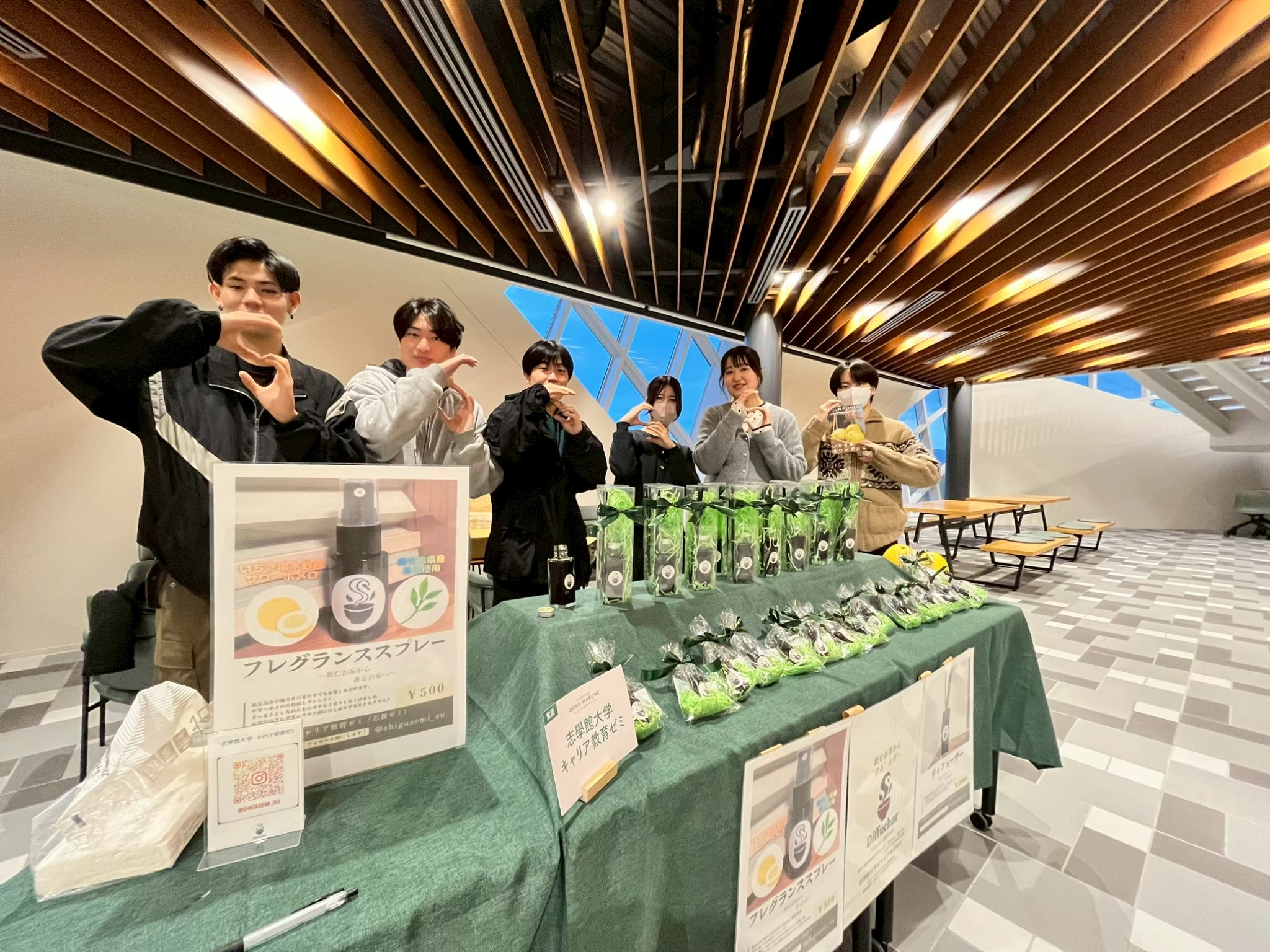 荒茶生産量日本一を誇る「かごしま茶」。しかし全国的な知名度はまだ低く、近年は若者を中心とした「お茶離れ」も課題となっています。そこで、志學館大学キャリア教育ゼミの学生が、「飲む」だけでなく「香りを楽しむ」というアプローチから商品を開発し、販路開拓やイベント企画を考え、若者をはじめ幅広い世代にかごしま茶の魅力を発信するプロジェクトを始めました。同ゼミでは、「産官学連携プロジェクト型学習」をテーマとし、産業界や行政、地域の方々とともに、鹿児島の地域課題の解決や活性化に向けて主体的に活動し、実践的に学んでいます。